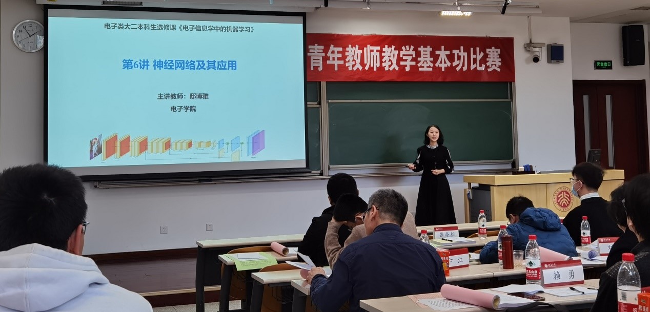 On March 25th – 26th, Peking University held the 22nd Basic Teaching Skills Competition of Young Teacher. Two junior faculty members, Teng Wu, the Assistant Professor from the Institute of Quantum Electronics, and Boya Di, the Assistant Professor from the Institute of Information and Communication Technology, participated in the competition and achieved excellent results. Among them, Teng Wu won the 1st Prize in the Science and Technology Section, Prize of Curriculum Ideology and Politics, the Outstanding Teaching Plans Prize, and the Outstanding Teaching Presentation Prize. Boya Di won the 2nd Prize in the Science and Technology Section, the Outstanding Teaching Plans Prize, and the Most Welcome Among the Students Award. Professor Xingjun Wang and Professor Weiwei Hu awarded the Outstanding Instructors in the Science and Technology Section. These four faculty members from School of Electronics captured all prizes in this Competition.