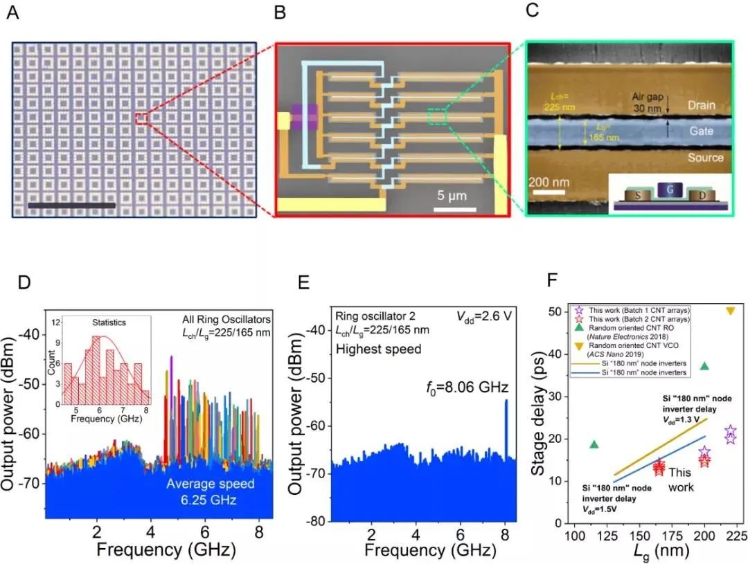 电子学系张志勇-彭练矛团队发展了高密度高纯半导体碳纳米管阵列薄膜晶圆制备技术,首次突破了超大规模碳管集成电路发展的材料瓶颈。基于该材料,首次展示了性能超过相同尺寸的硅基CMOS电路的碳纳米管集成电路。该成果发表于《科学》杂志(Science, 2020, 368(6493): 850–856)。