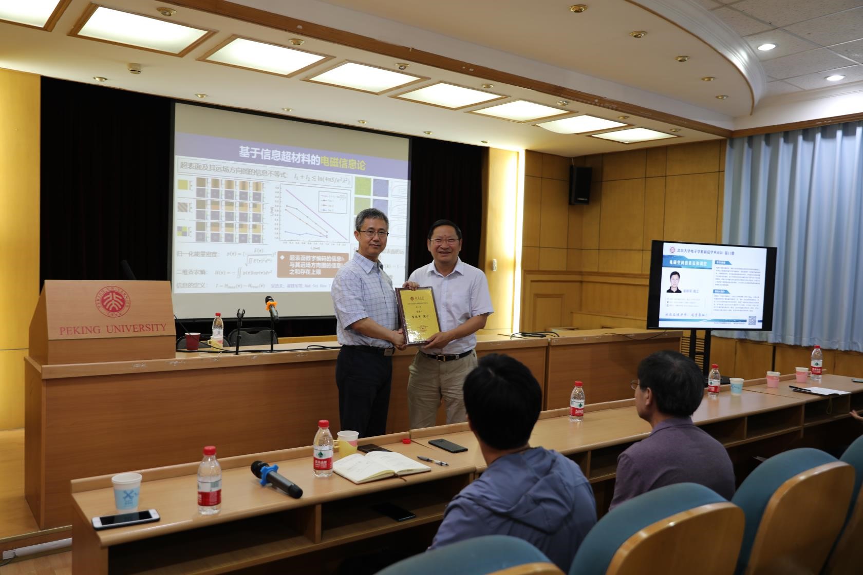 活动的最后,电子学系系主任彭练矛院士为崔铁军教授颁发本次活动的纪念证书并合影留念。本期讲座在热烈的掌声中圆满结束!
