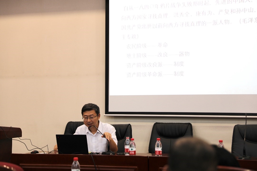 在讲座中,周良书教授首先带我们回顾了近代国人探寻救国之路的艰苦历程。在近代鸦片战争后,全国涌现了许多仁人志士。以洪秀全、康有为、孙中山等为代表的革命先士先后为探寻中国发展之路发起了一系列革命和改良运动。时代风云变幻,思潮涌动,但并没有一个能够彻底解决中国社会的根本问题。