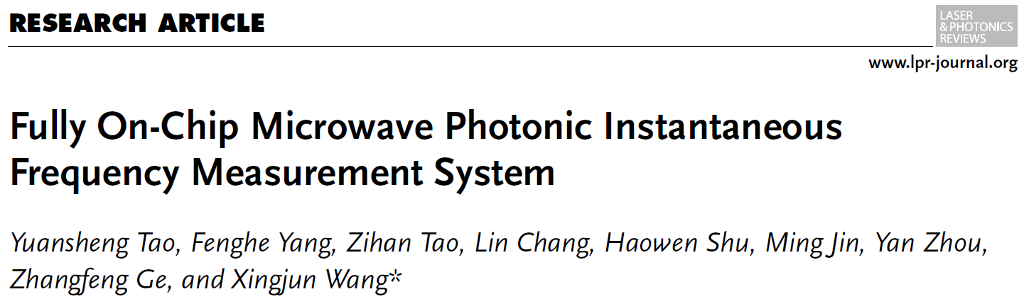 近日,电子学院王兴军教授课题组在集成微波光子学研究领域取得突破性进展,该团队采用光电混合集成技术方案,研制出世界上首个光-电完全芯片化集成的微波光子功能系统,并实验展示了对超宽频段微波信号瞬时频率的快速、精准测量。相关成果以“Fully on-chip microwave photonic instantaneous frequency measurement system”为题于2022年8月12日发表在Laser & Photonics Reviews期刊上。