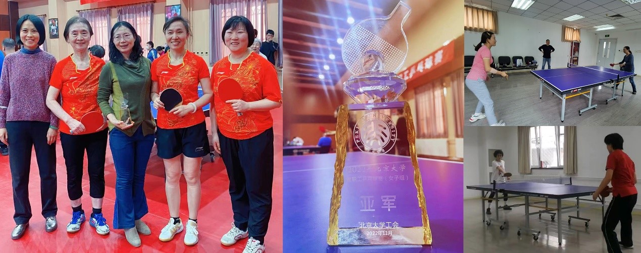 电子学院乒乓球队原属信科球队的一支,原信科乒乓球队曾取得过辉煌的战绩:2019年包揽男女组冠军,女队更是在2008、2009、2018、2019年四次夺冠。2022年11月底电子学院成立后乒乓球队重新组建,女队的王利华老师和胡薇薇老师是信科女乒四次夺冠的主力队员,起到了很重要的传帮带作用。因为对乒乓球运动的热爱,王利华老师虽已退休依然克服伤病坚持练习和比赛。胡薇薇老师20多年前刚到北大时就和王老师一起在信科乒乓球队打球,从信科女队的三单成长为绝对主力,目前是电子学院女队的主力队员和主心骨,一直在为球队寻求指导、排兵布阵。丁雪芹老师、宋萍萍老师和于海琼老师去年加入球队,为女队补充了新生力量。电子学院乒乓球队一直抓住各种机会切磋提高,每周都有固定训练时间,组队后就积极参加了二届电子学杯乒乓球邀请赛,获得男单亚军一次、季军一次,女单冠军一次、亚军两次,混双亚军一次;和学生的混合组队获得混双冠亚军各一次。电子学院乒乓球队也经常约场地和其他院系教工及学生中的高手打球,这些都使队员们得到了更多磨练的机会,保持了较好的竞技水平。