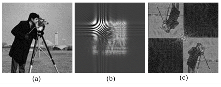 (a)原图,(b)全息图,(c)再现像