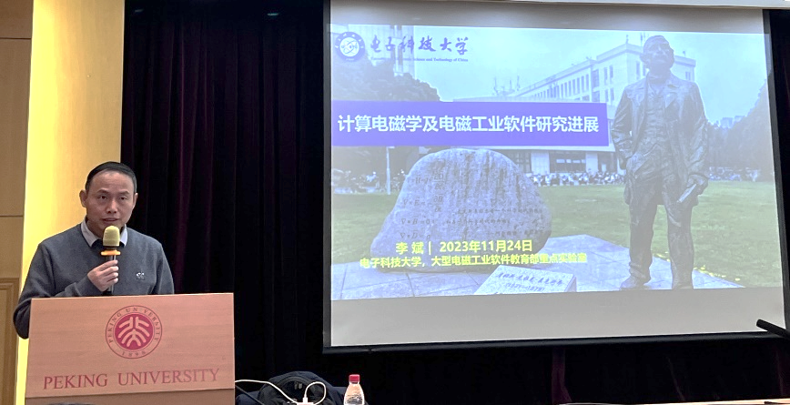 2023年11月24日下午14:00,北京大学电子学院前沿论坛第57期讲座于线下成功举办。本次讲座邀请了电子科技大学电子科学与工程学院院长李斌教授。他分享了主题为“计算电磁学及电磁工业软件研究进展”的精彩讲座。本次论坛由电子学院副院长魏贤龙主持,约70名师生共同参与了本次学术交流活动。