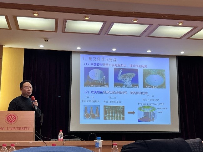 2023年12月15日下午14:00,北京大学电子学院前沿论坛第59期讲座于线下成功举办。本次讲座邀请了西安交通大学信息与通信工程学院教授刘海文主讲,分享了主题为“大口径射电望远镜相位阵馈源关键技术研究”的精彩讲座。本次报告由电子学院杜朝海研究员主持,60余名师生参与了本次活动。