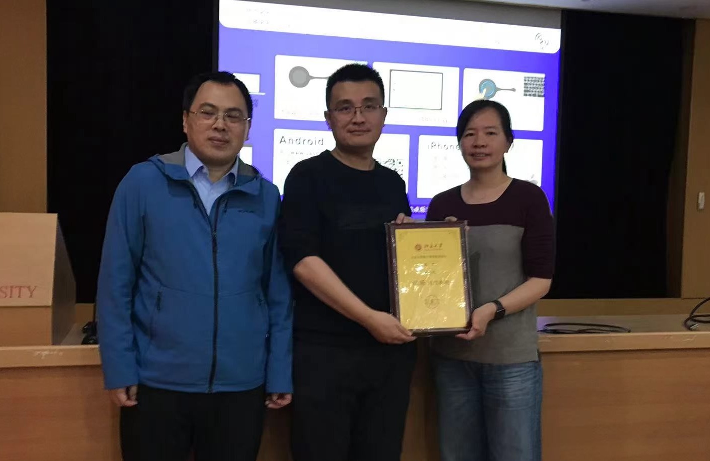 在提问环节,刘旸助理教授与参会师生就超洁净量子材料/器件的应用场景等一系列问题展开了热烈讨论。报告结束时,电子学院长聘副教授胡又凡为刘旸助理教授颁发了北京大学电子学院前沿论坛纪念牌。
