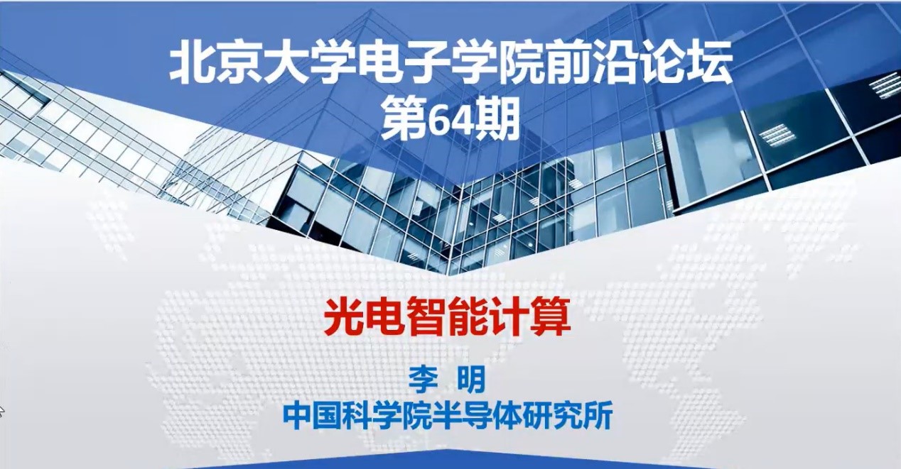 2024年3月29日下午18:30,北京大学电子学院前沿论坛第64期线上成功举办。中国科学院半导体研究所李明研究员以“光电智能计算”为题做了精彩报告。讲座由电子学院学术委员会主任张志勇教授主持,约100名师生线上参与了讲座。