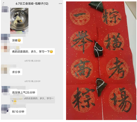 活动结束后,大家提着粽子满载而归,用高压锅加工,味道赞不绝口!并在群里分享经验,端午的粽叶,在水汽的蒸腾里,氤氲香气。咬上一口,浓郁的糯香在舌尖处流淌,落在心头,百转千回。深藏着一种时光,那是家人闲坐,灯火可亲的闲适惬意,这世界便有珍馐万千,也抵不过岁月里的历久弥香,这就是世间最大的幸福!也愿大家历经千帆,归来“粽有所爱”!