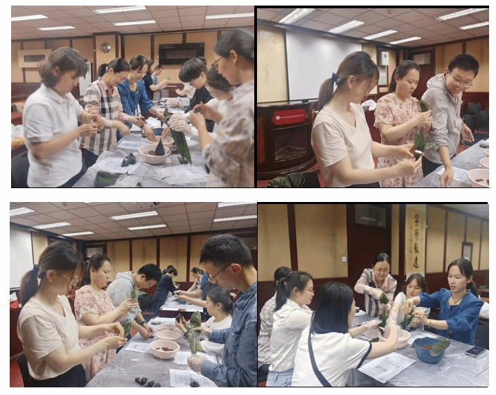 一片绿叶、一缕清香、一根细绳传承着千年的味道,大家纷纷亮出看家本领,用灵巧的双手把对生活的热爱包进甜甜的粽子里。有的是初次尝试,虽然动作稍显笨拙,但那份对传统文化的热爱和尊重却溢于言表,一个个形态各异,饱含祝福的粽子绽放指尖。大家围坐在一起,幸福感洋溢在每个人的脸上。