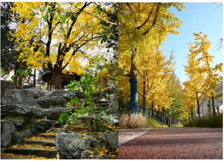 银杏树映衬下的理科楼群 插花