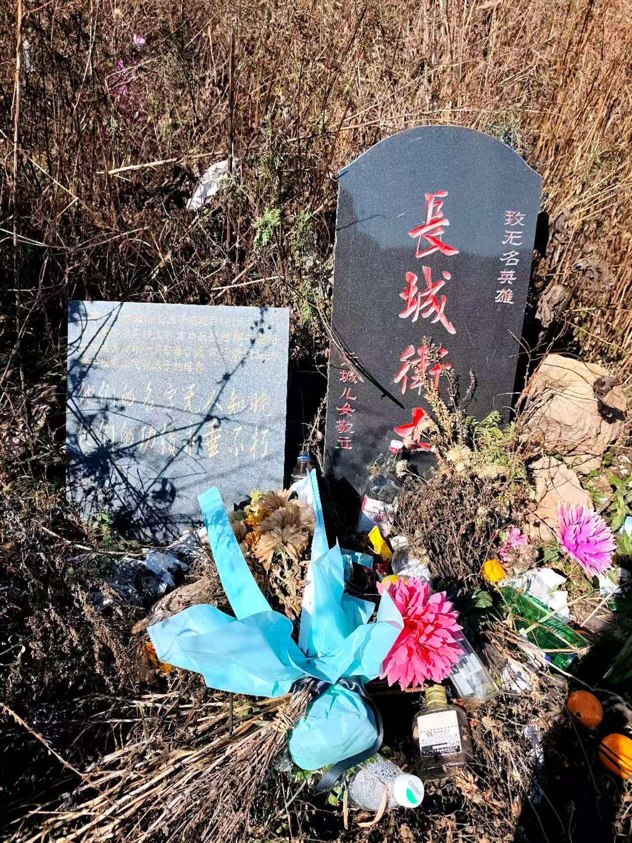 沿着木栈道继续前行,老师们穿行于白桦林中。山泉潺潺,鸟鸣幽幽,在寂静的山谷中,大家仿佛穿越时空,回到那个烽火连天的岁月。长峪城一带是南口战役的重要战场,这里的每一寸土地都铭记着抗战英烈的英勇事迹。登上海拔1400多米的黄花坡,北京与河北的交界处,老师们瞻仰了抗日英雄纪念碑与南口战役"长城卫士"纪念碑。1937年8月,中国军队在此与日军展开殊死搏斗,用鲜血和生命捍卫了民族尊严。站在古长城遗址前,望着墙体上依然清晰可见的弹痕,老师们深切感受到历史的厚重与先烈的伟大。