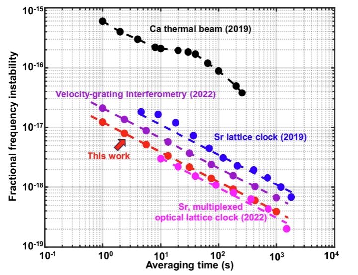 在全球时频计量体系加速向光频时代演进、国际计量委员会(CIPM)推动时间的基本单位“秒”基于光学跃迁重新定义的背景下,光钟技术已成为国际竞争的前沿焦点。面向这一趋势,钙原子束光钟因结构简洁、连续运行能力强,可在紧凑可靠的系统架构下提供更高稳定度,被视为最具工程化潜力守时飞轮光钟的重要候选。钙原子束光钟的发展将为下一代全光时频体系构建提供关键支撑。传统钙原子束光钟拉姆塞光谱虽具备显著的压窄跃迁线宽优势,但对原子速度具有严格选择性,使得绝大多数具有横向速度的原子无法参与干涉过程。在常规钙原子束光钟系统中,能够参与拉姆塞干涉过程的有效原子比例不足千分之一,原子利用率极低,系统短期稳定度因此受限于量子投影噪声(QPN)极限,是制约进一步提升性能的核心瓶颈。