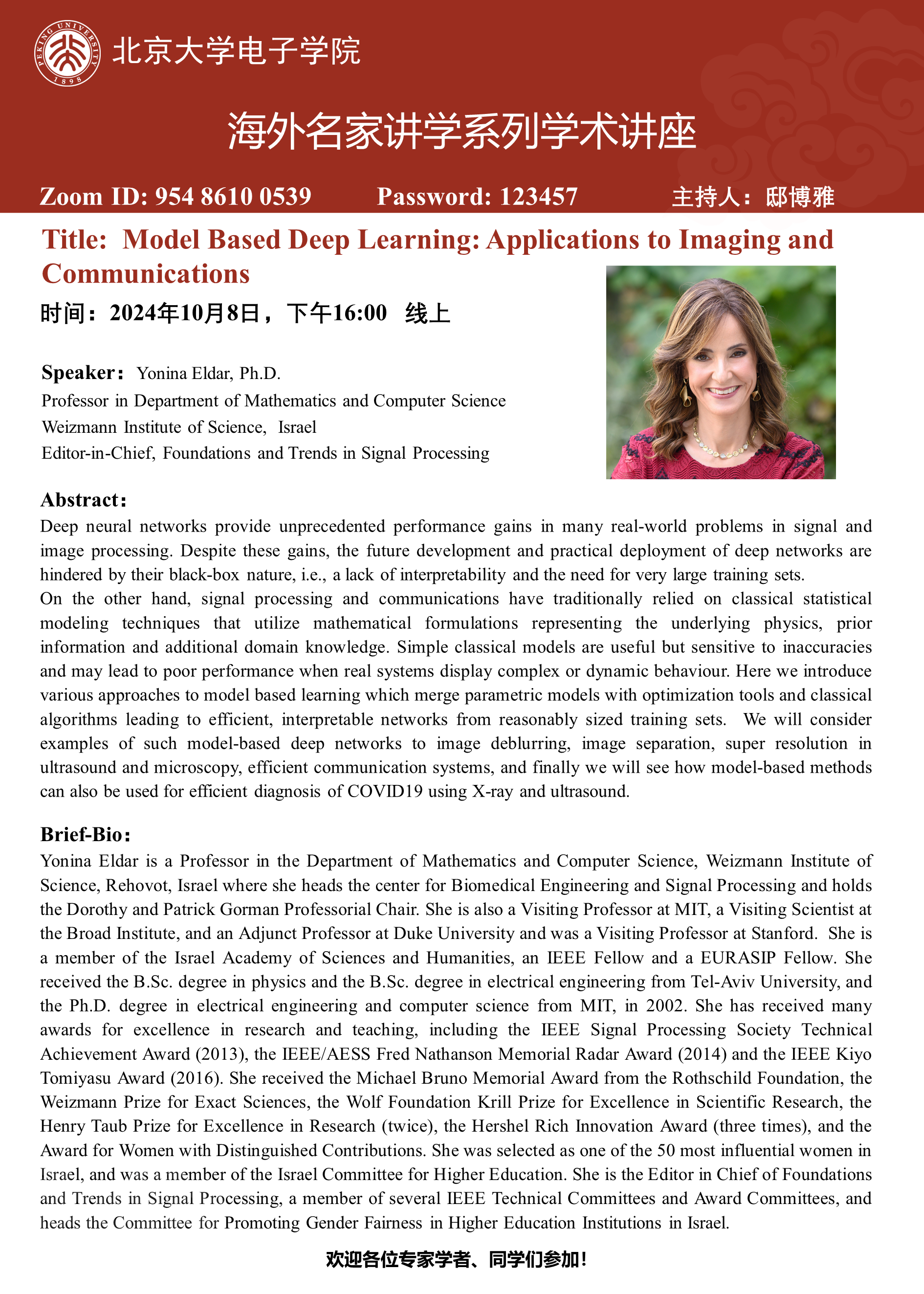 报告人:Yonina Eldar教授,魏茨曼科学研究所数学与计算机科学系