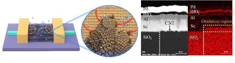 作为集成电路主流的硅基技术在步入亚5nm技术节点后面临来自物理、工艺、设计和成本等多方面的挑战,我们亟需引入新的器件技术来满足与日俱增的对算力和功耗的要求。碳纳米管具备原子级厚度、高载流子迁移率和对称的能带结构,是构建下一代CMOS晶体管和集成电路的重要候选半导体材料。近年来,研究人员利用碳管溶液多次分散提纯技术以及维度限制自组装的方法得到的晶圆级的高半导体纯度、高密度的阵列碳管薄膜(Science 2020, 368 (6493), 850−856)是制备大规模集成电路的理想材料。基于此材料已制备出高性能P型晶体管。该晶体管相比于同节点的硅基晶体管在性能和功耗上表现出综合优势(Adv. Funct. Mater. 2022, 32, 2104539),但是基于此阵列碳管材料的高性能N型晶体管迟迟没有实现。