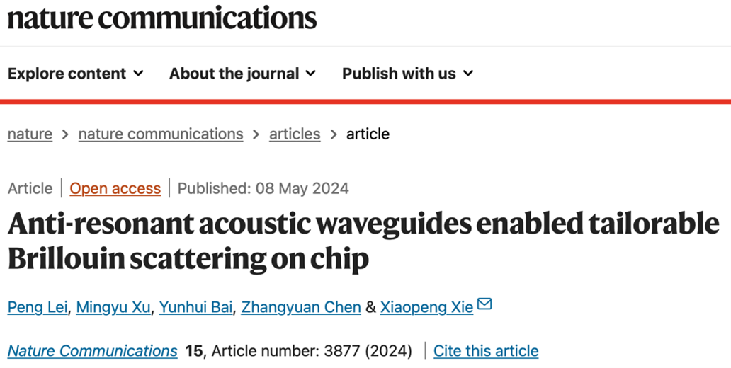 近期,北京大学电子学院、区域光纤通信网与新型光通信系统国家重点实验室微波光子学研究团队首次提出一种片上反谐振声波导的新范式,实现了对声学模式的灵活操纵与选择,获得了片上声光相互作用关键指标的新突破。2024年5月8日,相关研究成果以“反谐振声学波导赋能片上布里渊散射”(Anti-resonant acoustic waveguides enabled tailorable Brillouin scattering on chip)为题,在线发表于《自然·通讯》(Nature Communications)。
