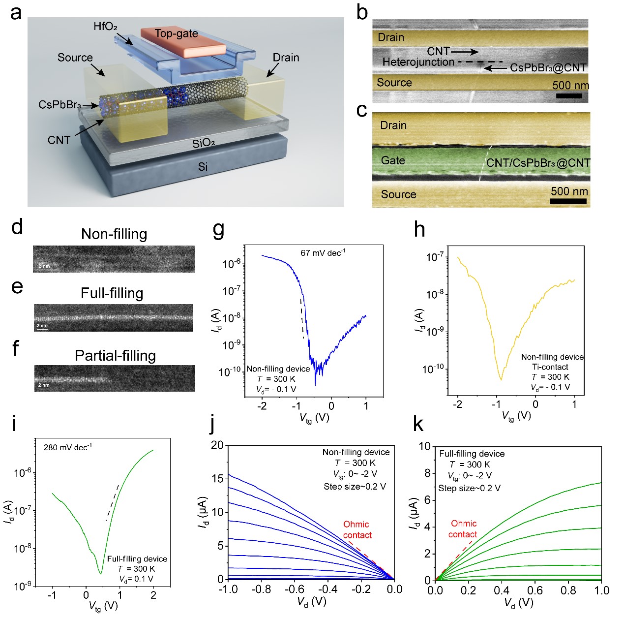 图2:N型全填充掺杂CsPbBr3/CNT晶体管器件