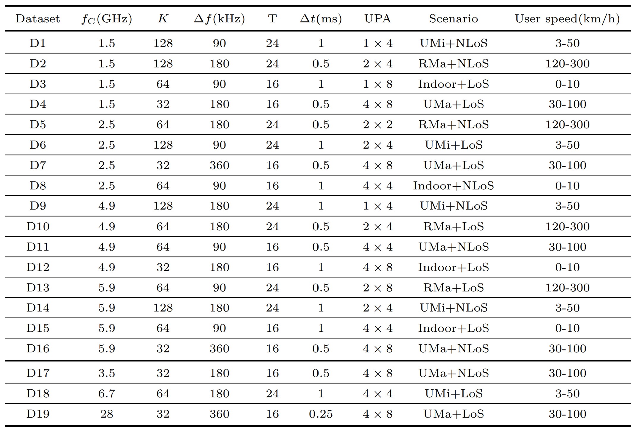表1 大规模仿真CSI数据集