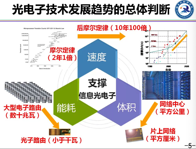 接下来,祝院士向我们介绍了国家在光电子技术的部署规划,“十二五”以来国家加大对光电子领域的重视程度,并且已经产出了许多突出成果,但仍面临部分高端器件依赖进口、采购渠道易被控制的安全隐患和战略威胁。针对这一现状提出了光电子集成和未来颠覆性技术的光电子战略重点,在芯片设计工具、集成加工工艺、封装测试技术等共性关键技术上不断突破,从解决应用需求出发发展至形成技术储备,进一步引领研究方向。