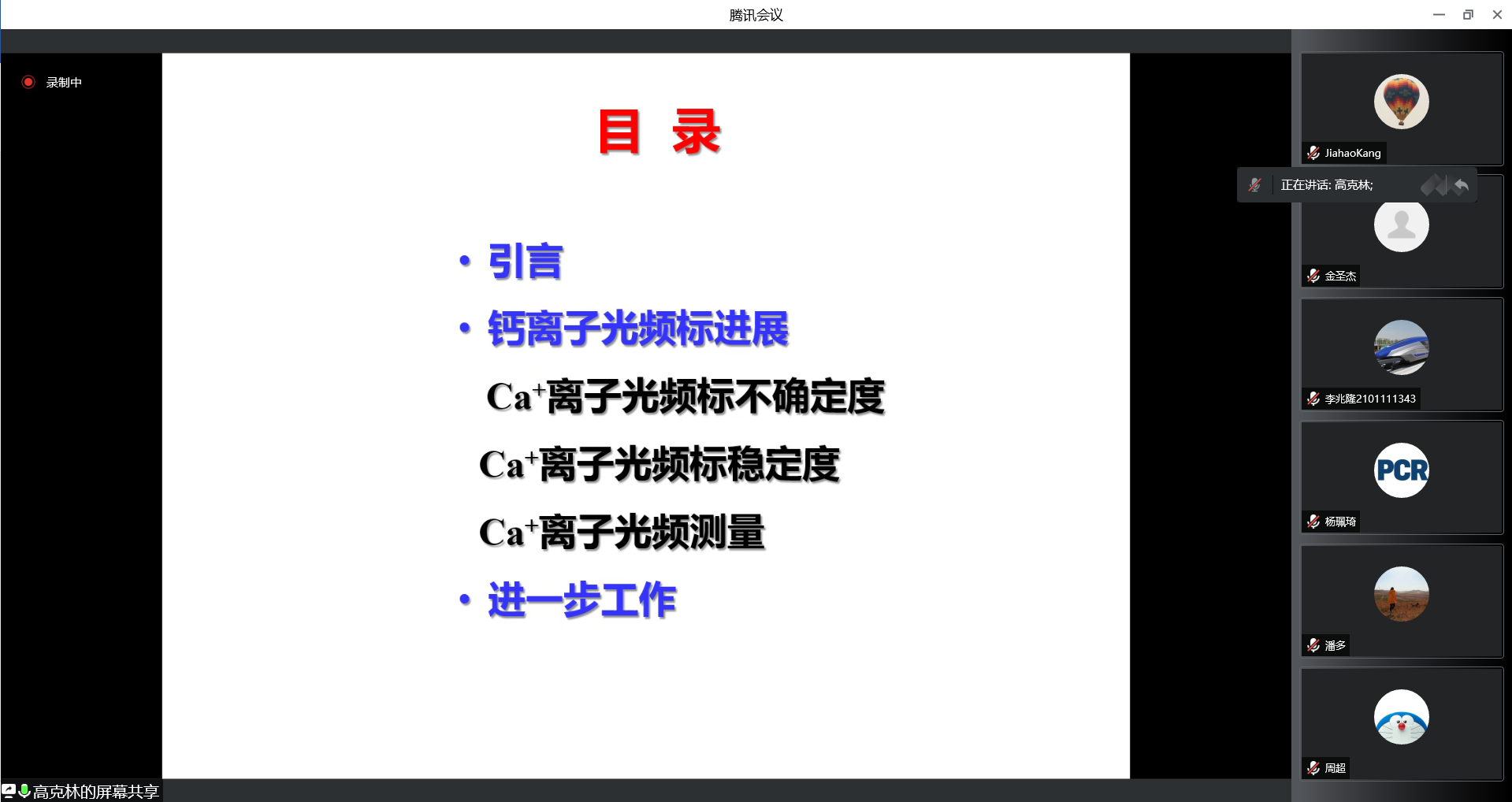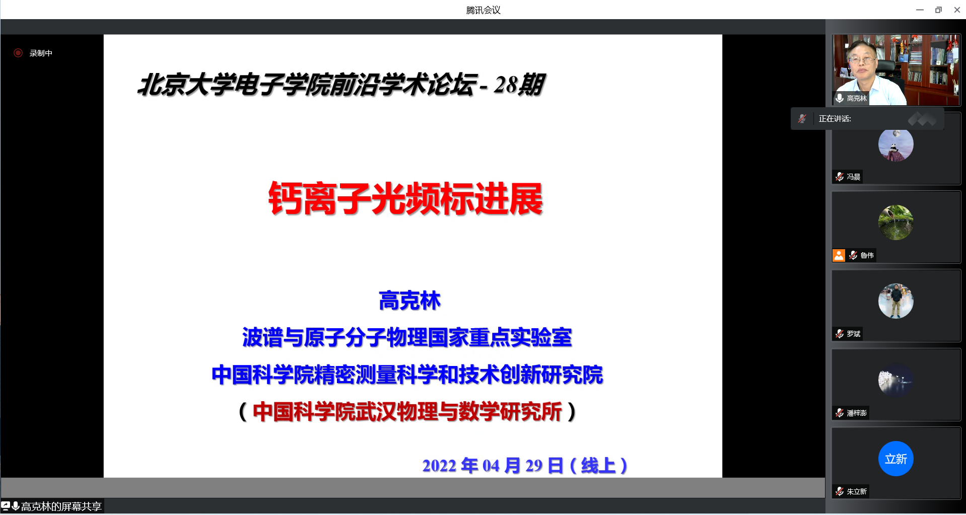 报告中,高克林研究员详细讲述了实现钙离子光频标的研究历程。