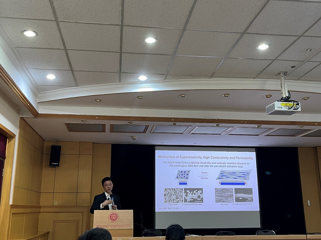 2023年3月17日下午14:00,北京大学电子学院前沿学术论坛第46期讲座在北京大学理科二号楼2736报告厅成功举办。香港理工大学应用生物及化学技术学系软材料及器件讲座教授,智能可穿戴系统研究院副院长,材料与器件中心实验室副主任郑子剑教授以“Fibrous Conductive Materials for Wearable Electronics”为题作了精彩报告。讲座由电子学院胡又凡老师主持。