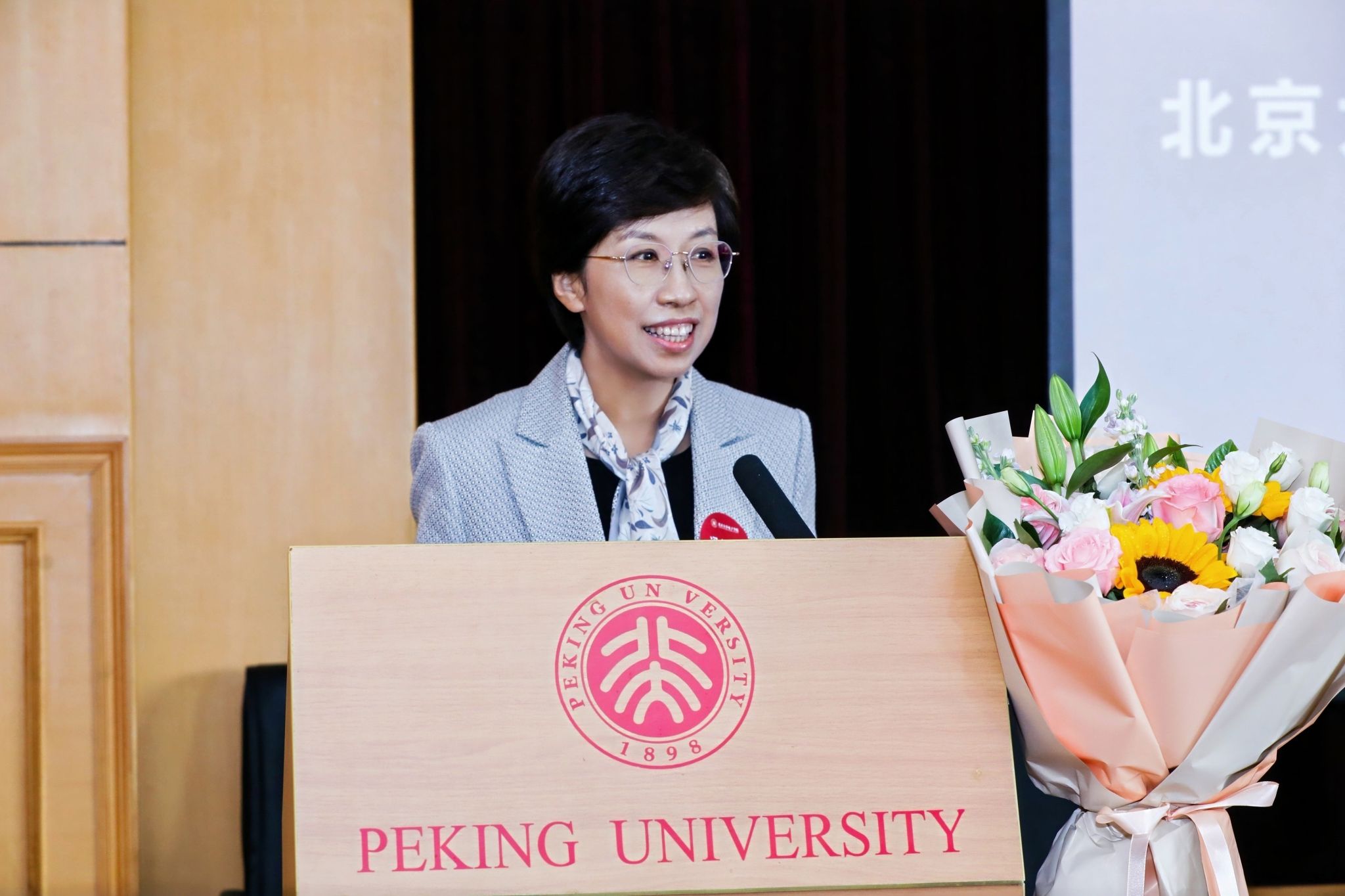 电子学院党委书记、北京大学校友会电子学院分会副会长冯梅萍致辞